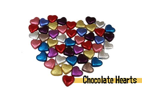Bright foiled coloured Chocolate Hearts come in a mixture of bright colours. Individual colours also available