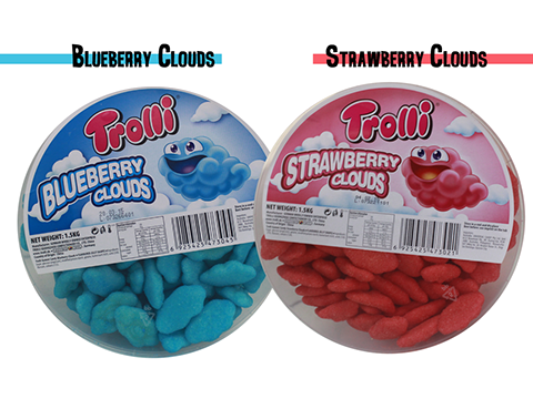 Strawberry and Blueberry Clouds are available in a tubs. For your candy Buffet.